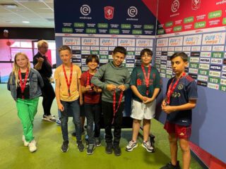 NEEDE/EIBERGEN – Afgelopen vrijdag zijn de kinderen van de groepen uit Neede, Winterswijk en Eibergen van Petje af Achterhoek samen naar De Grolsch Veste in Enschede geweest. De kinderen en de begeleiders hebben veel gehoord en gezien over FC Twente. Van de kleedkamer tot de duurste skybox. Maar ook het veld waar ze, voor de dug-outs, op het kunstgras mochten staan. Oh wee als ze maar met 1 teen op het natuurgras zouden komen.